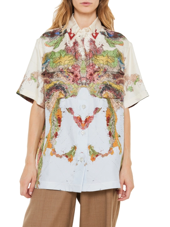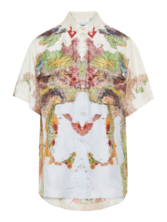 Κατασκευασμένο από υλικό υψηλής ποιότητας, αυτό το ιδιαίτερο και εντυπωσιακό πουκάμισο του οίκου Burberry έχει άνετη γραμμή και είναι διακοσμημένο με τον χάρτη του κόσμου. Είναι ένα διαχρονικό και πολυτελές σχέδιο που θα αναβαθμίσει κάθε σας εμφάνιση. Ταιριάζει με denim παντελόνια, φούστες, βερμούδες και κολάν. Σε κάθε περίπτωση το αποτέλεσμα θα είναι fashion.