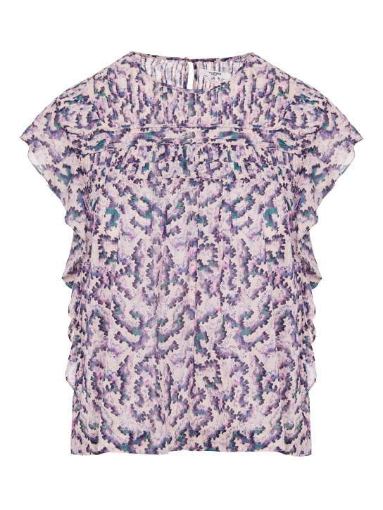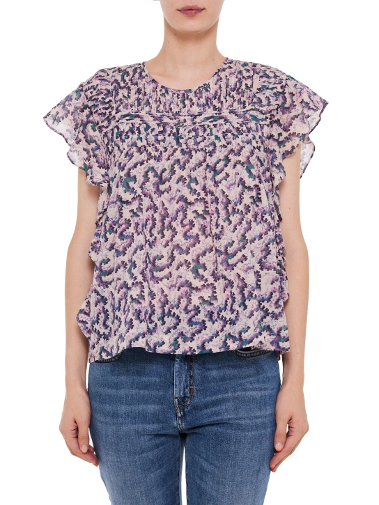 Η μπλούζα αυτή από το brand Isabel Marant αντικατοπτρίζει επακριβώς την boho πλευρά του brand. Είναι κατασκευασμένη από οργανικό βαμβάκι, έχει διακοσμητικά βολάν και είναι διακοσμημένη με εμπριμέ μοτίβο. Μπορείτε να την συνδυάσετε με ψηλόμεσα παντελόνια ή βερμούδες.