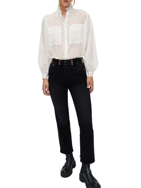 Τα slim-fit τζιν παντελόνια είναι πάντα στην μόδα και δεν πρόκειται να φύγουν ποτέ. Επενδύστε τώρα σε αυτό το μαύρο τζιν παντελόνι με υπογραφή Maje και φορέστε το όλες τις ώρες της ημέρας και με κάθε outfit. Είναι ιδανικό για μια χαλαρή βόλτα στην πόλη αλλά ακόμα και για το γραφείο. Απογειώστε το στυλ σας συνδυάζοντάς το με λευκό πουκάμισο, ζώνη με λεπτομέρειες και δερμάτινες μπότες.