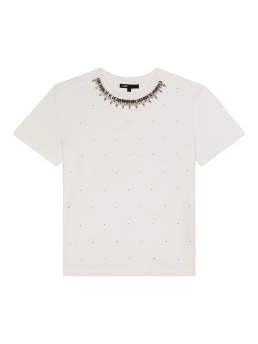 Διακοσμημένο με χάντρες, το νέο t-shirt της εταιρείας Maje κλέβει τις εντυπώσεις! Με το λευκό του χρώμα μπορεί να συνδυαστεί με κάθε outfit, ενώ ταυτόχρονα είναι ιδιαίτερα κομψό και μπορεί να φορεθεί όλες τις ώρες της ημέρας.