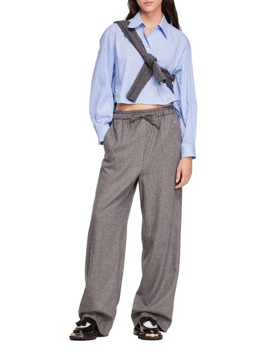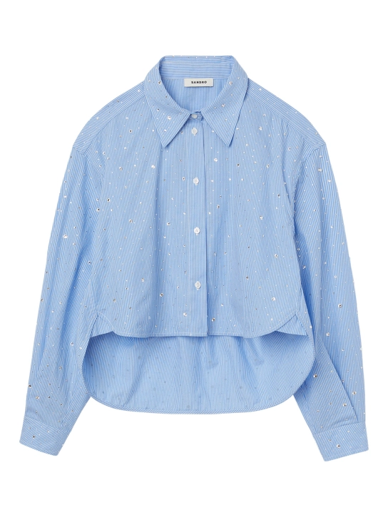 Η άνεση και η κομψότητα συνδυάζονται σε αυτό το ριγέ πουκάμισο του οίκου Sandro. Διαθέτει μακρυά μανίκια, ενώ ταυτόχρονα είναι διακοσμημένο με αστραφτερά κρύσταλλα παντού. Πιο κοντό μπροστά και μακρύτερο στο πίσω μέρος, μπορεί να δημιουργήσει τα πιο casual & chic outfits.