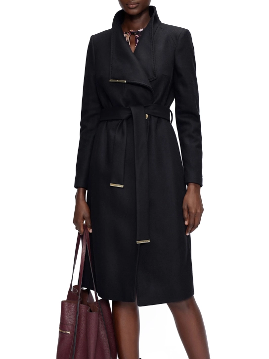 TED BAKER ΓΥΝΑΙΚΕΙΟ ΜΑΚΡΥ ΠΑΛΤΟ ΜΕ ΖΩΝΗ Μαύρο