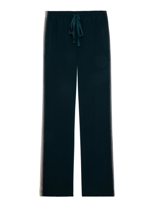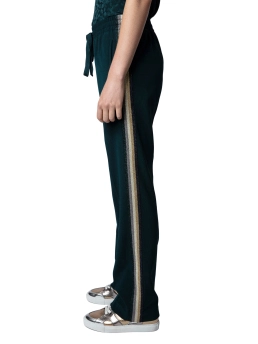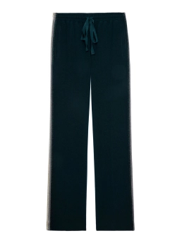 Cool και κομψό την ίδια στιγμή, αυτό το άνετο και βολικό παντελόνι με την υπογραφή του οίκου Zadig & Voltaire θα γίνει το αγαπημένο σας item. Έχει ίσια γραμμή, λάστιχο και κορδόνι στη μέση για να προσαρμόζεται σε διαφορετικά σώματα και είναι διακοσμημένο με lurex μαύρες, μπλε, ασημί, χρυσές και μπρονζέ ρίγες στο πλάι. Συνδυάστε το με t-shirt και σακάκι και εντυπωσιάστε.